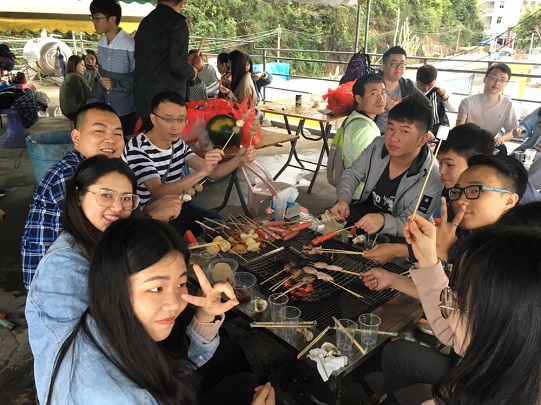 活動現(xiàn)場,大家分工行動,洗菜、切菜、燒肉、拍照,忙得不亦樂乎,都在為了午餐而各顯身手。有些同事的燒烤技術(shù)實在不敢恭維,把肉都烤成了“黑炭”;有的同事相當(dāng)出色,看他們烤出來的肉、雞翅,不僅色澤誘人,而且香飄四溢!大家烤得認(rèn)真,吃得津津有味,燒烤與飲料搭配,歌聲與歡笑點綴,顯露出長隆人之間單純的情誼;你一言、我一語,讓成員們認(rèn)識了彼此,也熟悉了彼此。