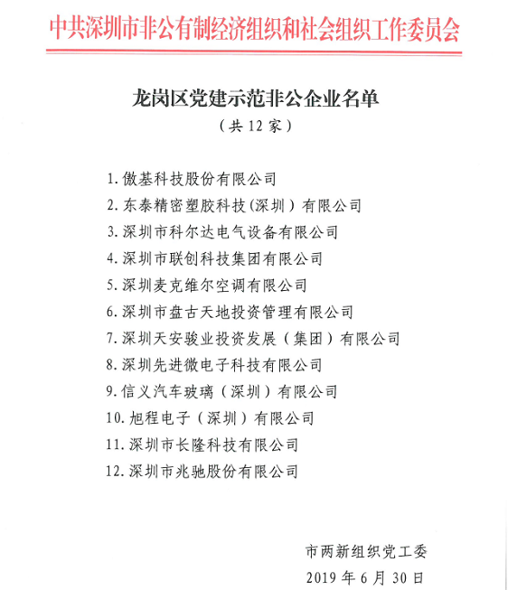 從深圳市兩新組織黨工委獲悉,我司有幸成功入選深圳市非公企業(yè)黨建“百企示范,整體提升”項(xiàng)目企業(yè)。