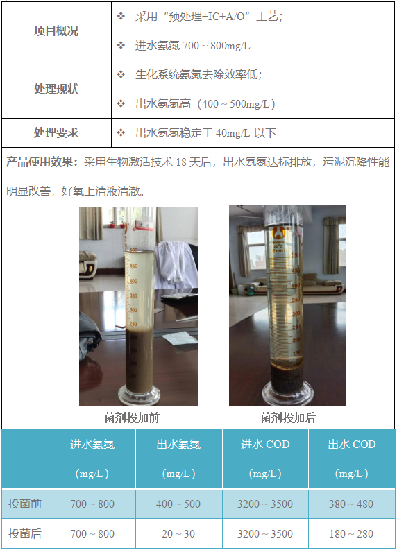 通過投加我司庫巴魯氨氮激活菌201,對處理流程優化完成后,達到如下效果: